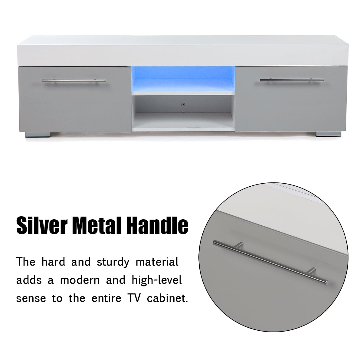 Hommpa Modern Tv Stand For Tvs Up To 58 High Gloss Entertainment Center Media Console Living Room Tv Cabinet With Led Lights Gray White Finish Walmart Com